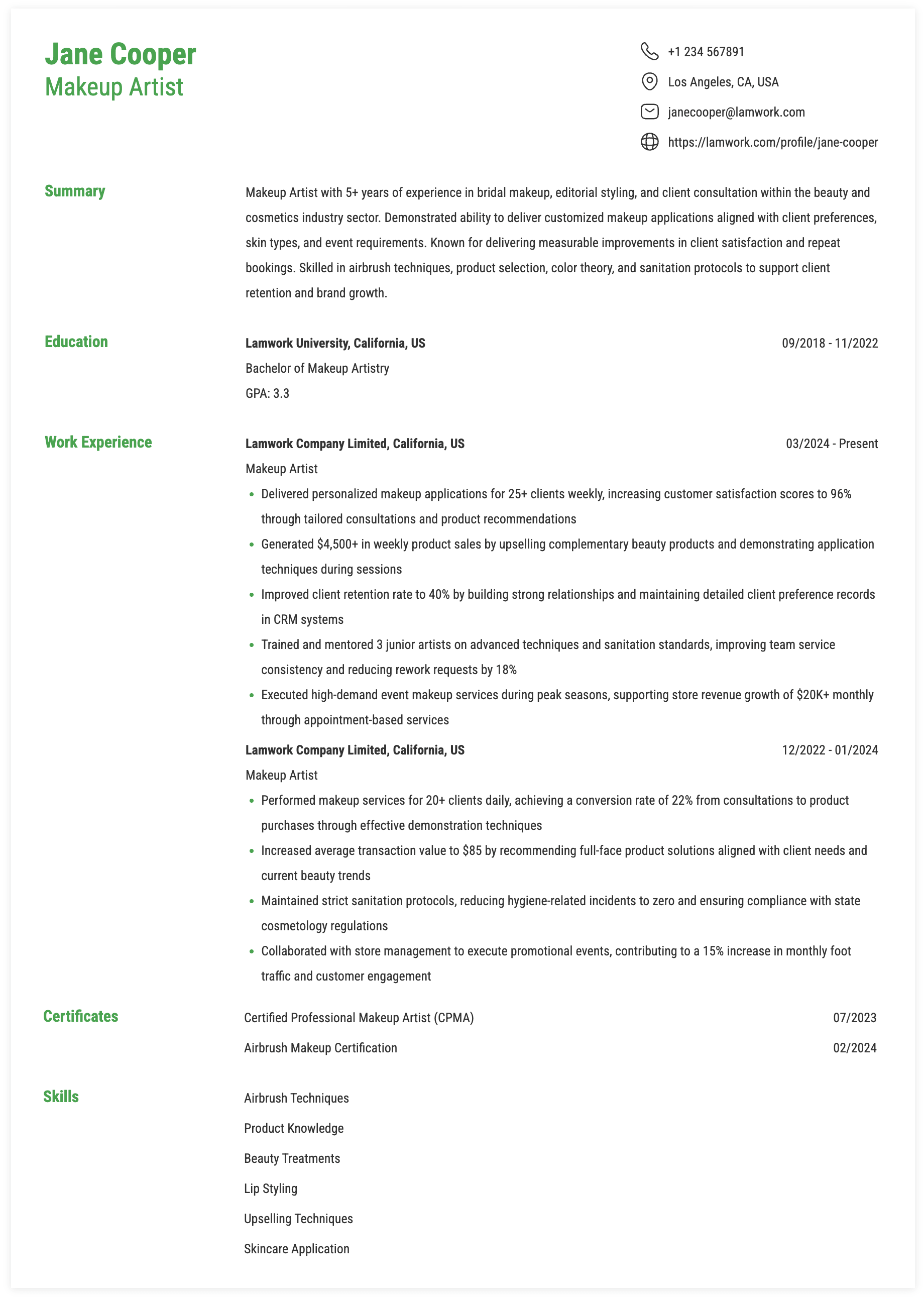 Sample ATS-Friendly Work Experience for Makeup Artist Roles