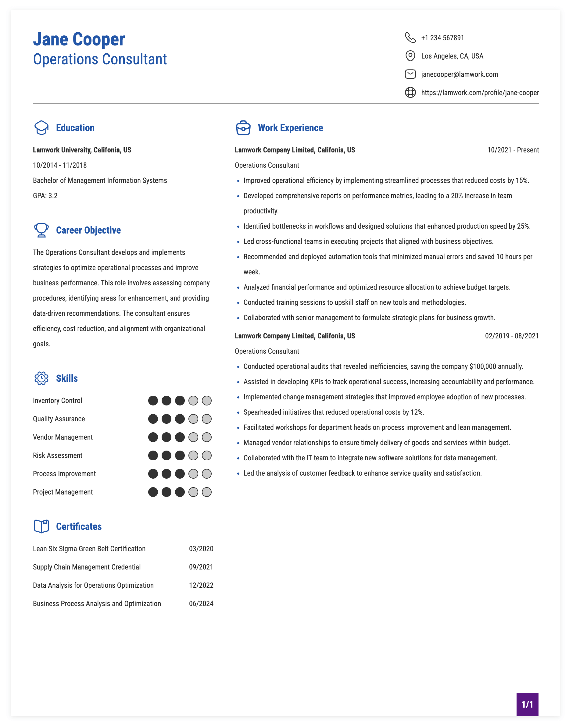 OPERATIONS CONSULTANT RESUME EXAMPLE