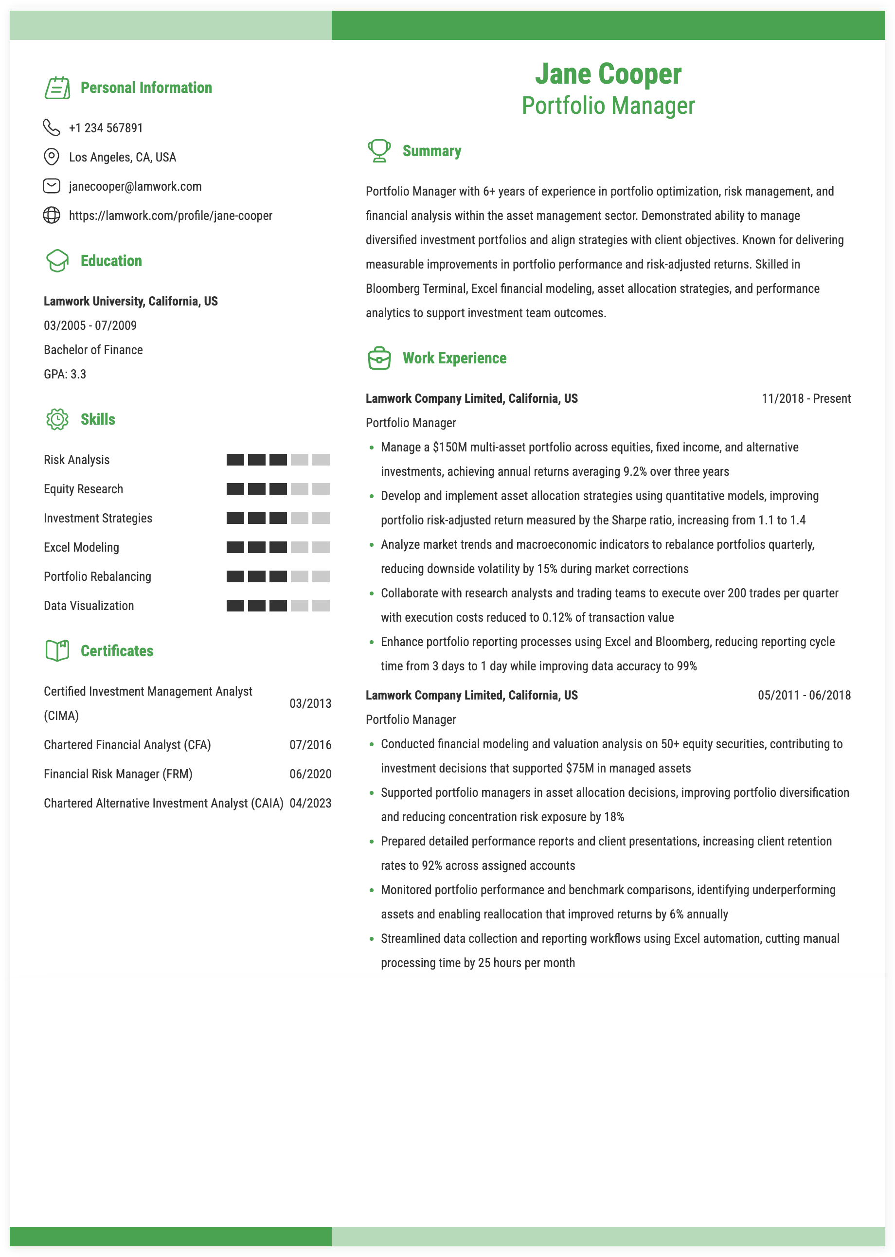 2. Mid-Level Portfolio Manager Resume