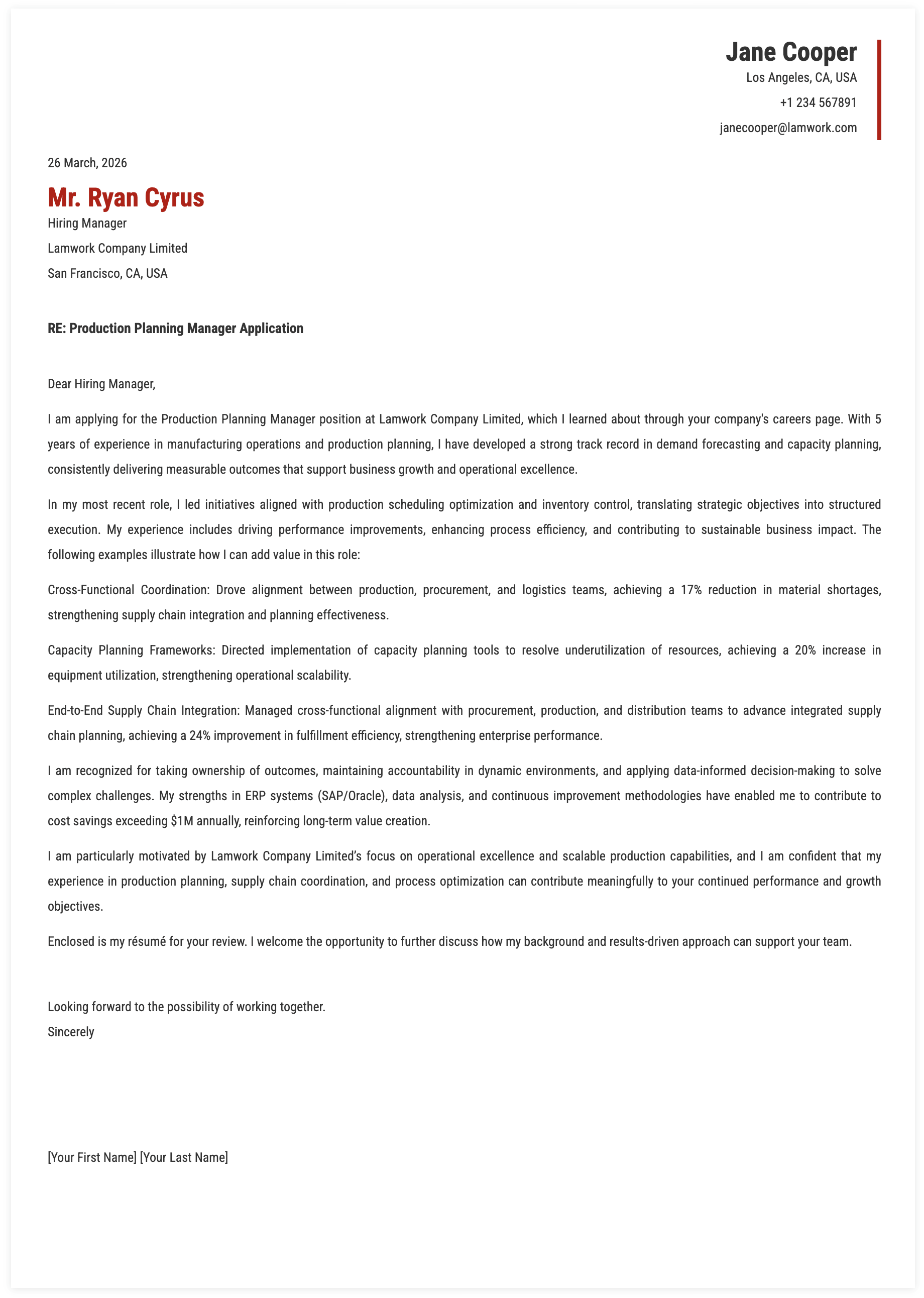 Skills, Experience, and Responsibilities to Highlight When Writing an ATS-Friendly Production Planning Manager Cover Letter