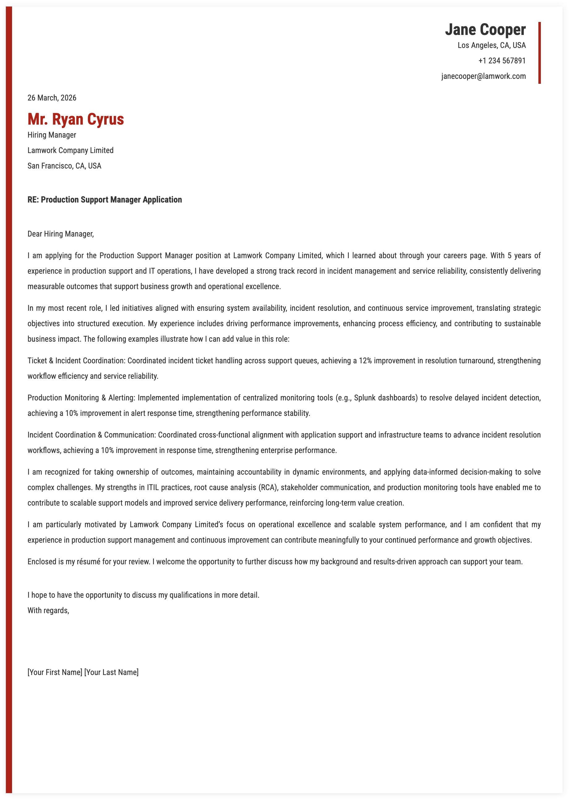 Skills, Experience, and Responsibilities to Highlight When Writing an ATS-Friendly Production Support Manager Cover Letter
