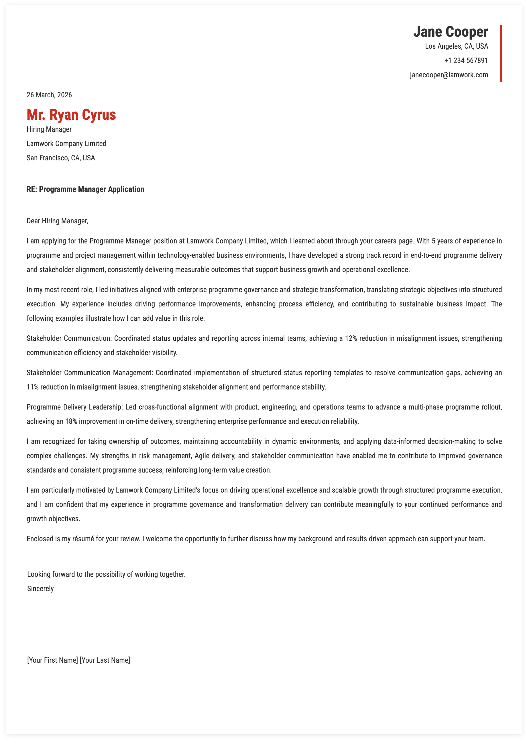 Skills, Experience, and Responsibilities to Highlight When Writing an ATS-Friendly Programme Manager Cover Letter
