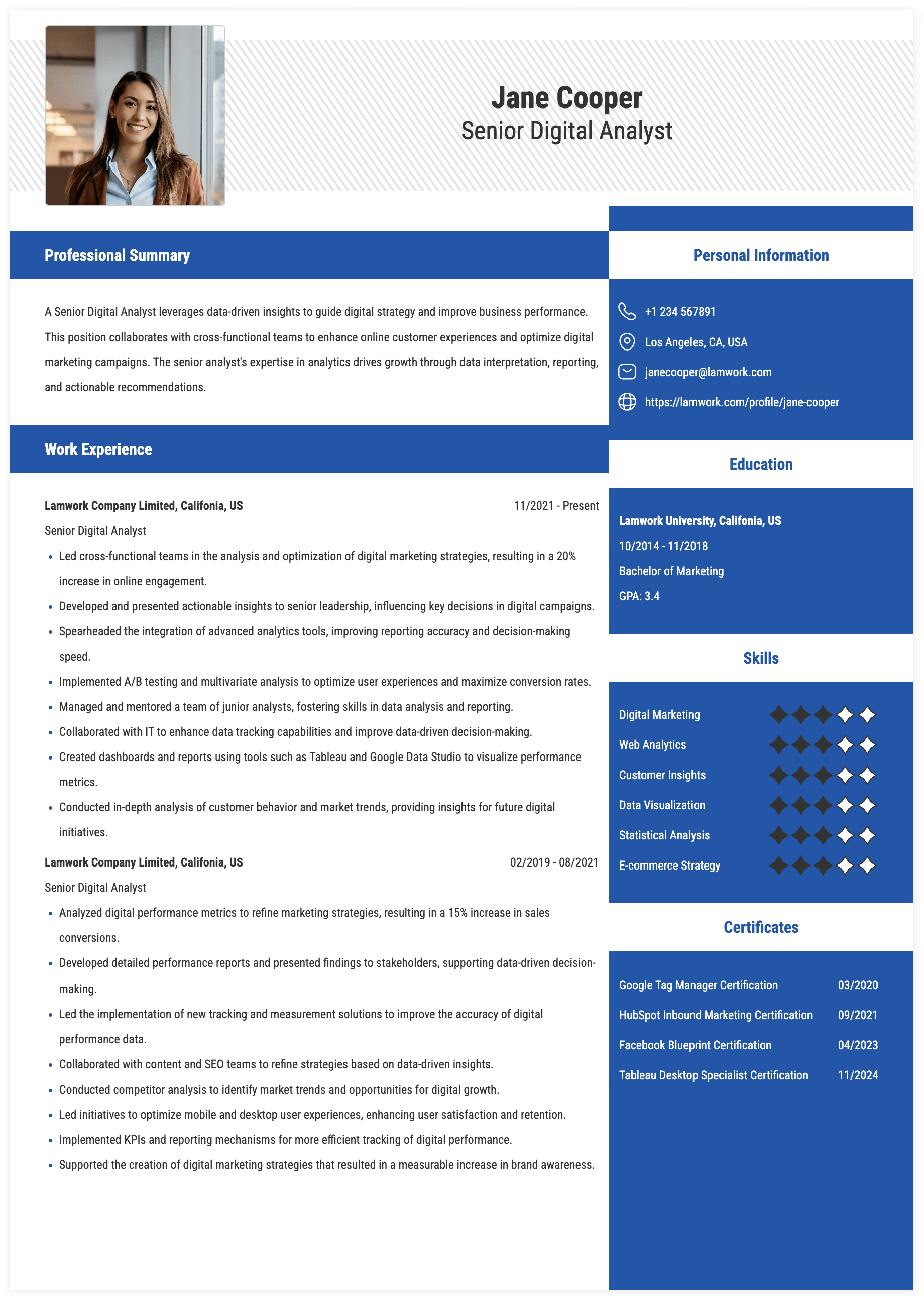 SENIOR DIGITAL ANALYST RESUME EXAMPLE