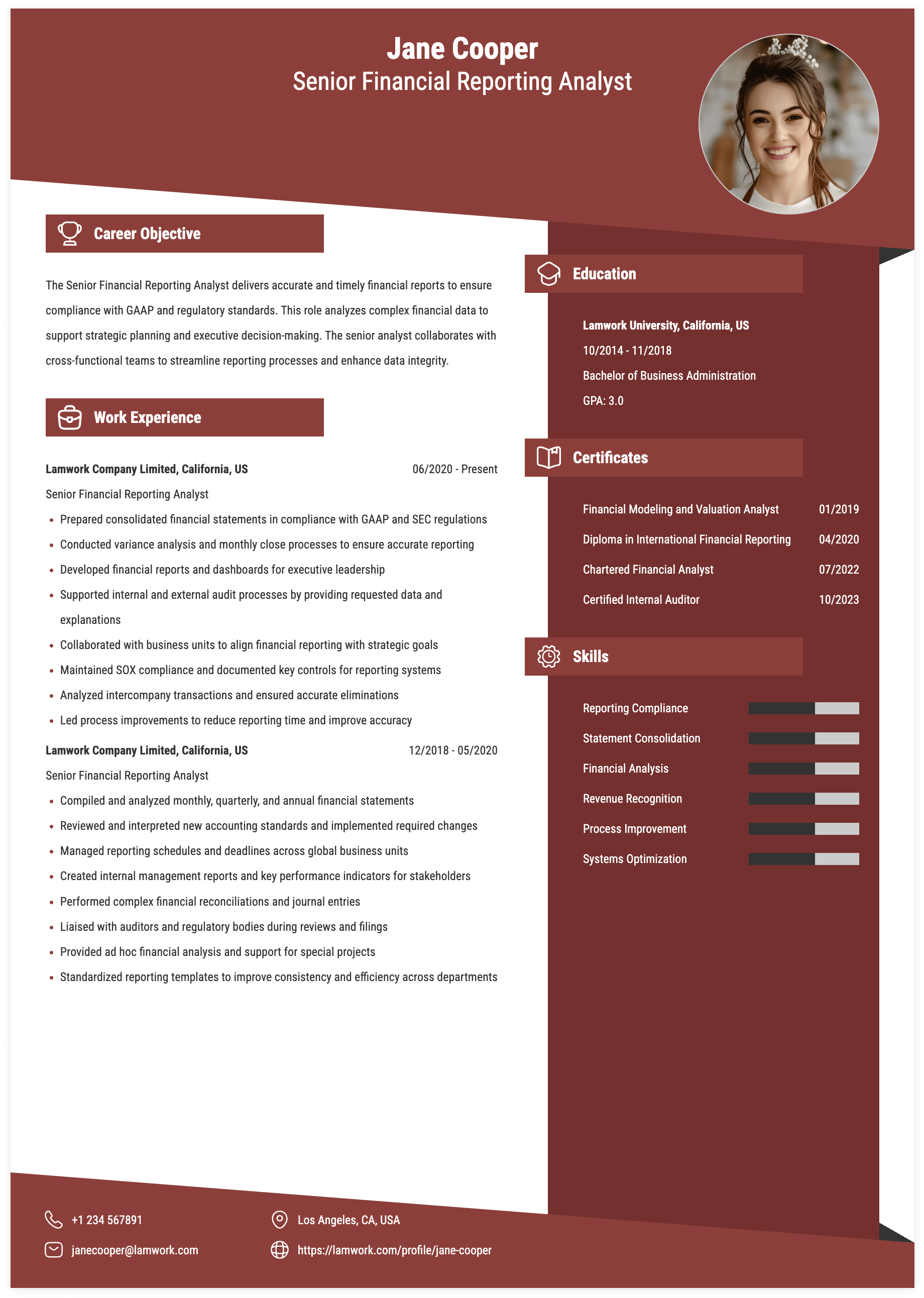 Updated: Oct 31, 2025 - The Senior Financial Reporting Analyst is tasked with preparing comprehensive financial reports for senior management and the Board of Directors, including sales data, performance metrics, and various financial analyses. This role supports the monthly financial consolidation process, ensures adherence to GAAP, and aids in the preparation of SEC filings, such as cash flow statements and footnotes. The senior analyst also participates in the implementation of new accounting standards, assists in financial audits, and contributes to internal controls and compliance with Sarbanes-Oxley (SOX) requirements.