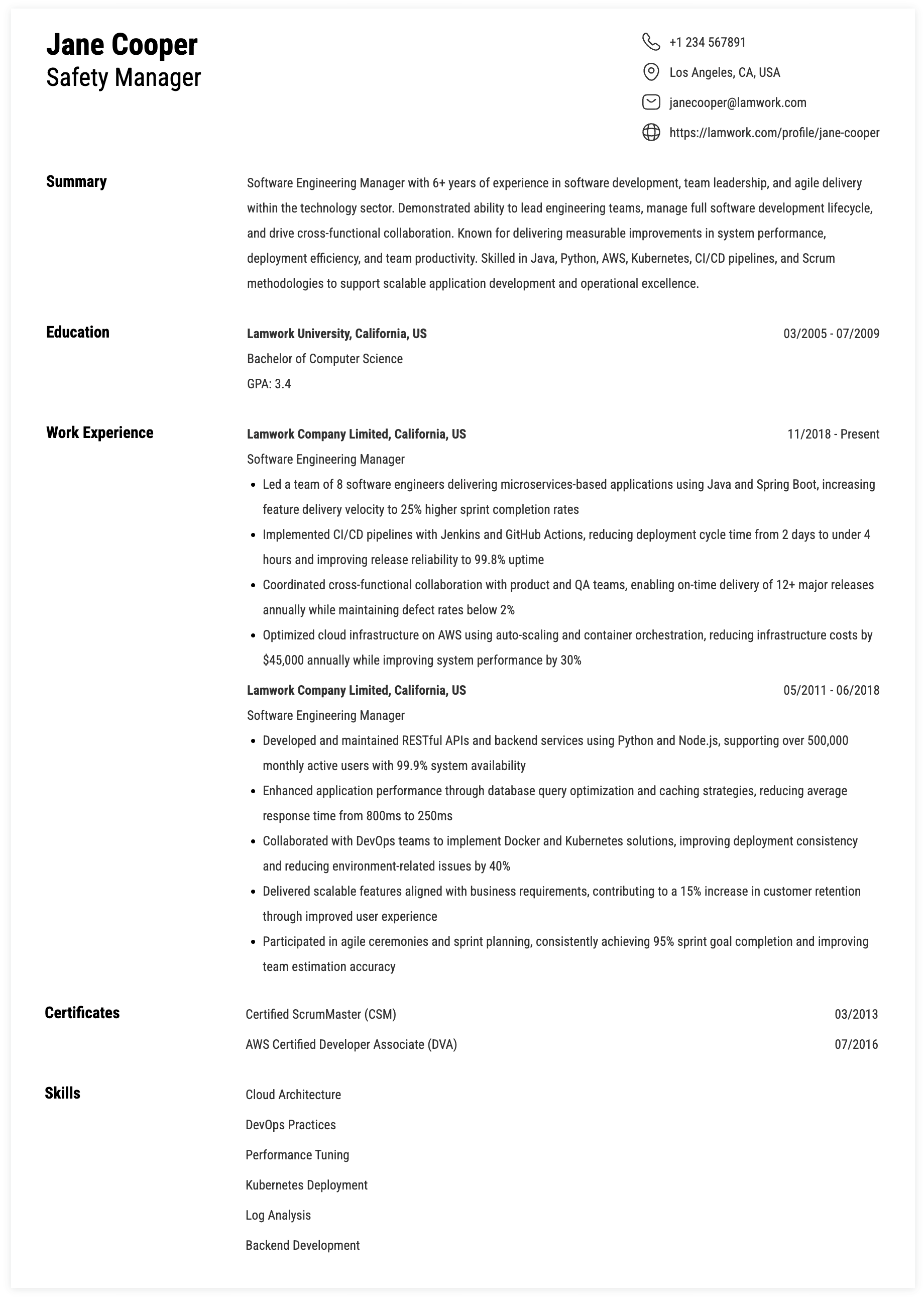 Sample ATS-Friendly Work Experience for Software Engineering Manager Roles