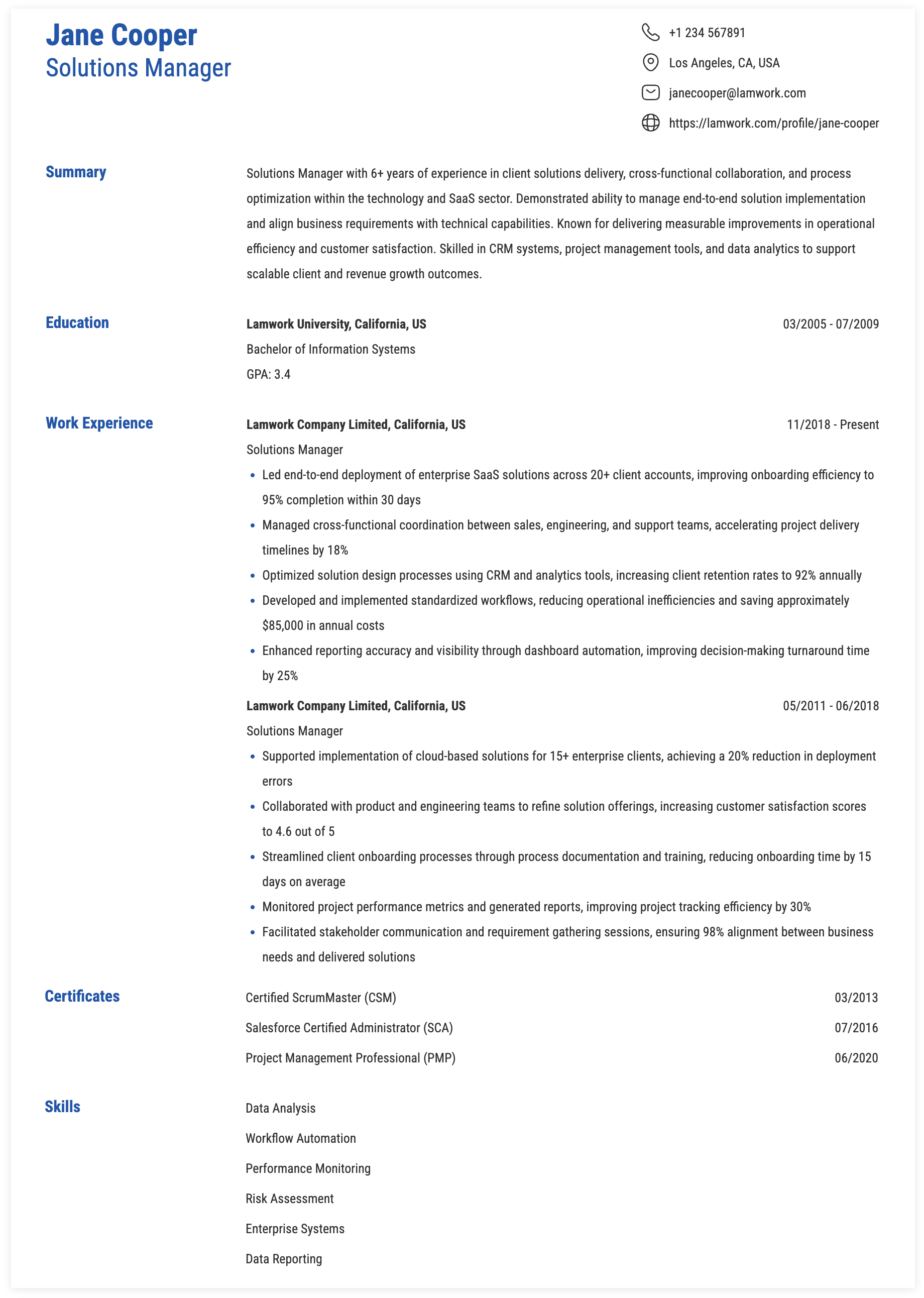 Sample ATS-Friendly Work Experience for Solutions Manager Roles